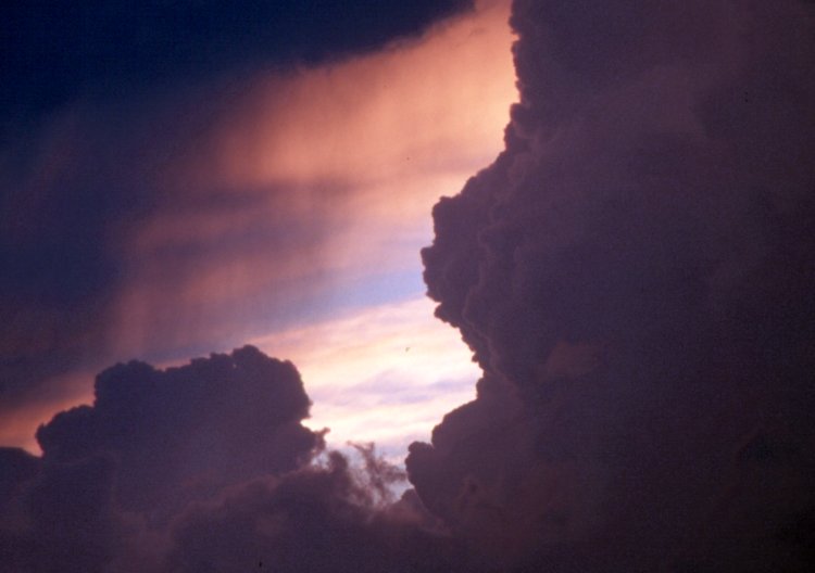 Cumulus congestus, Cumulonimbus capillatus incus virga, Cirrus spissatus cumulonimbogenitus (Cu con, Cb cap inc vir, Ci spi cbgen) |
